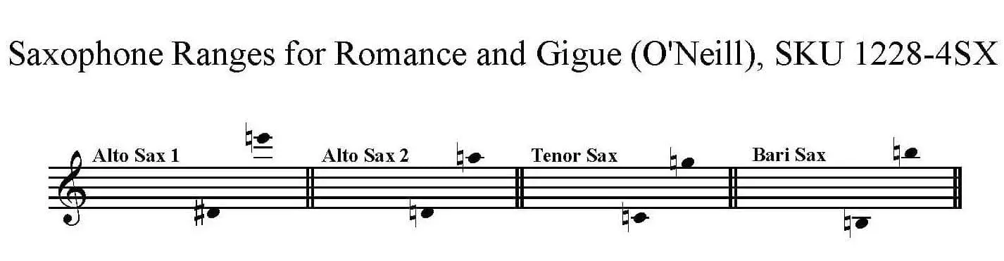 The first movement, Romance is in 6/8 time with a flowing melody and gentle syncopations throughout. The second movement, Gigue, is a lively dance that bounces the melody from instrument to instrument with the middle section featuring the bari sax.