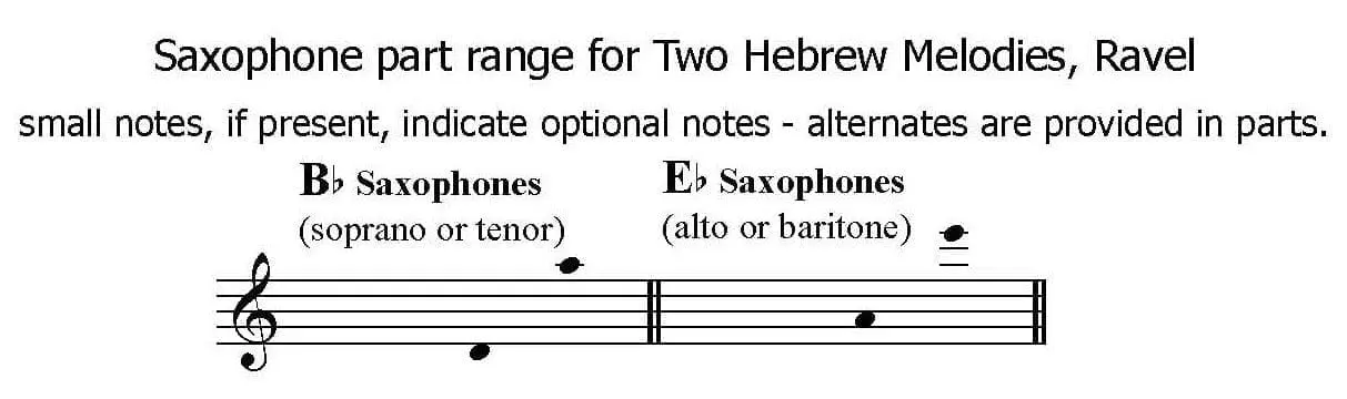 - The range for each saxophone part is shown below.